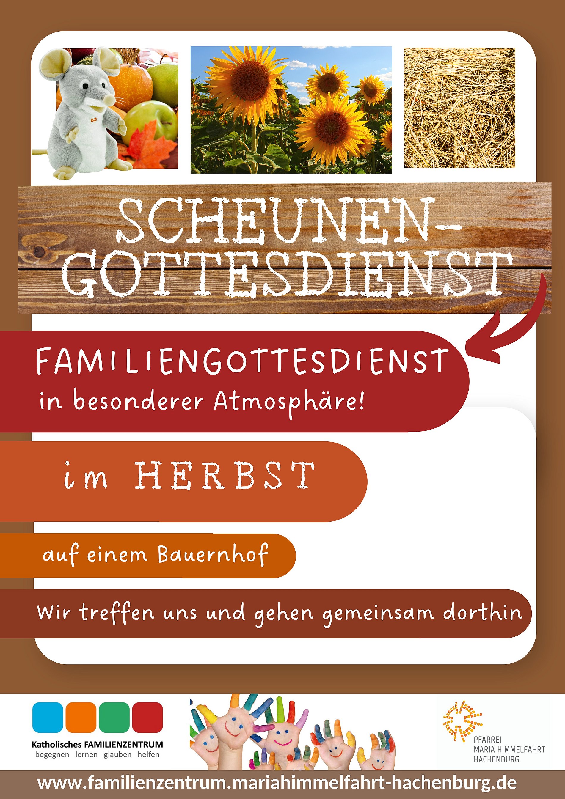 Im Herbst feiern wir zum Thema Erntedank einen SCHEUNEN-GOTTESDIENST in der besonderen Atmosphäre eines Bauernhofes - bisher auf dem Hofgut Kleeberg und auf dem Biohof Mies in Hachenburg.