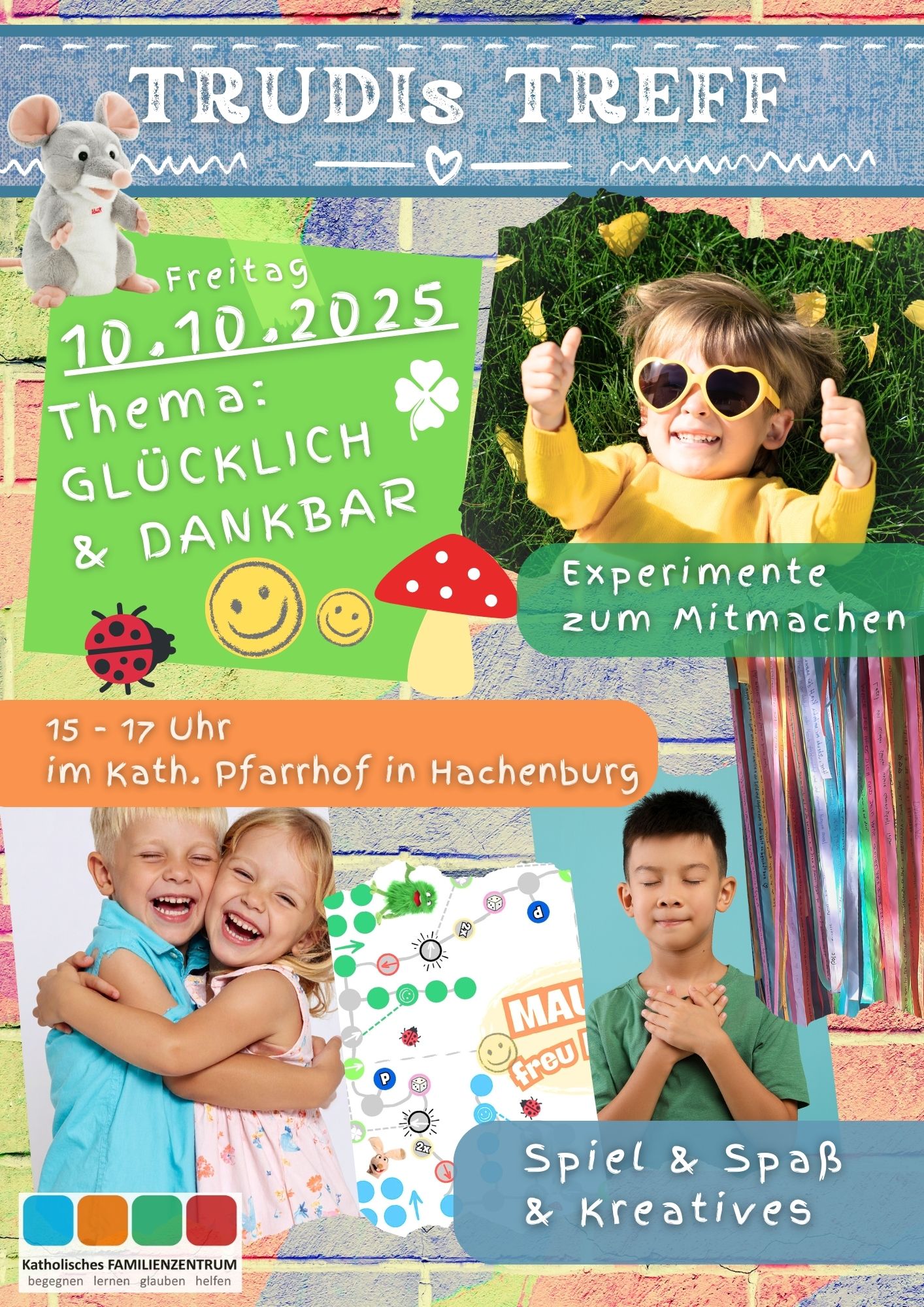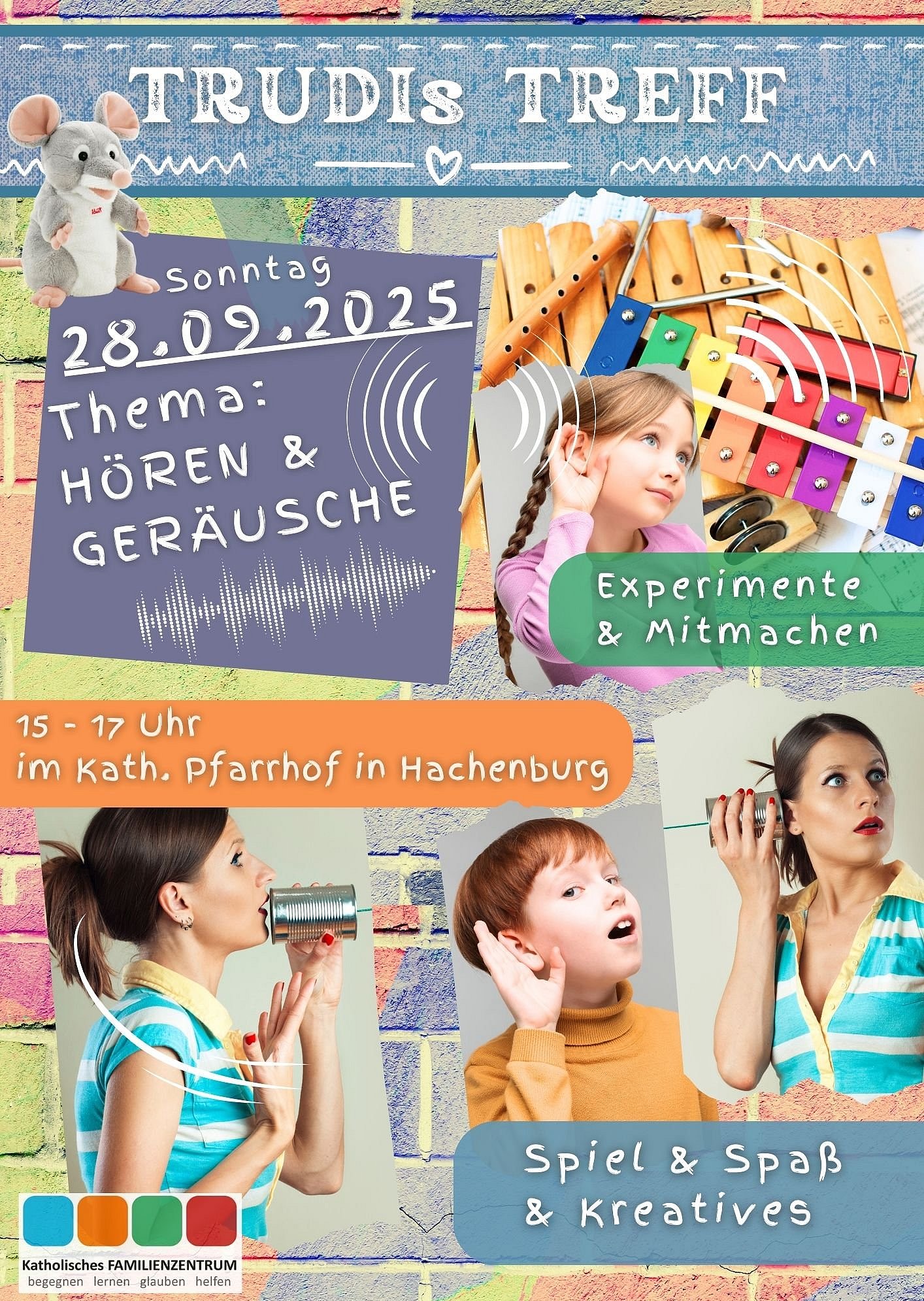 Kirchenmaus TRUDI und ihre Rasselbande - zusammen mit dem Team des Familienzentrums - freuen sich auf Euch!
